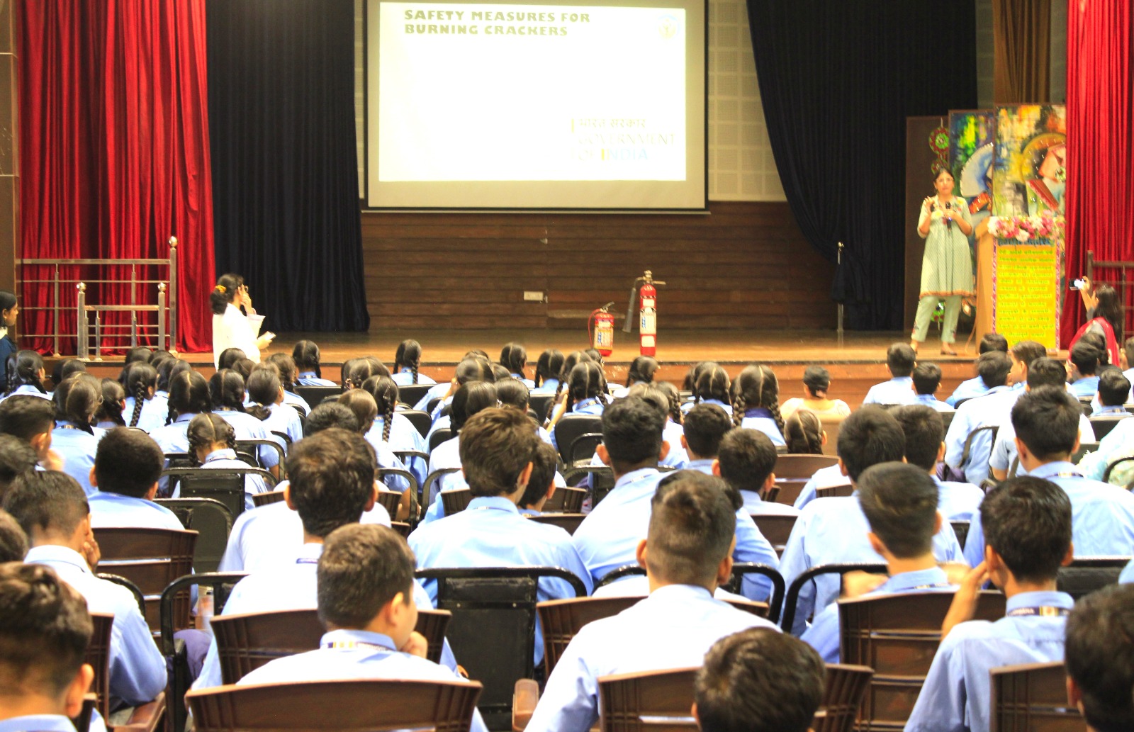 Bhartiya Vidya Mandir, Udham Singh Nagar, organized an insightful awareness seminar on the theme “Diwali Without Scars” to sensitize students about fire safety and preventive measures during the festive season.The session was conducted by Dr. Sheerin Shah, Professor, Department of Plastic & Reconstructive Surgery, Dayanand Medical College & Hospital, Ludhiana . Dr. Shah inspired students to celebrate a green and safe Diwali, emphasizing the importance of taking proper precautions while lighting diyas and crackers. She also conducted a live demonstration on the use of a fire extinguisher, illustrating effective ways to manage emergency situations. Students participated enthusiastically, gaining valuable hands-on knowledge about fire safety practices. Principal Mrs. Seema Gupta extended heartfelt gratitude to Dr. Sheerin Shah for her informative and engaging session. In her address, she encouraged students to celebrate Diwali responsibly — spreading the true spirit of light, joy and safety, while minimizing noise and pollution.